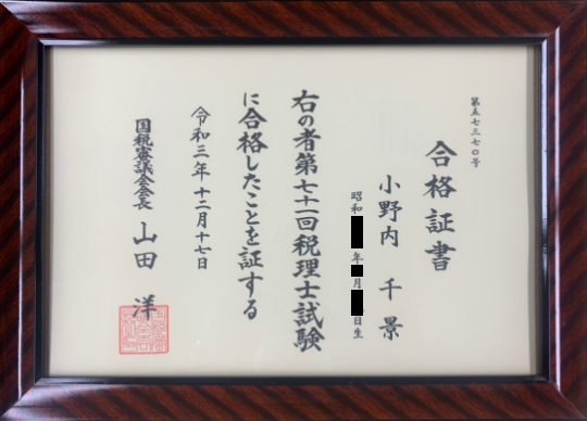- 2021年12月税理士試験合格