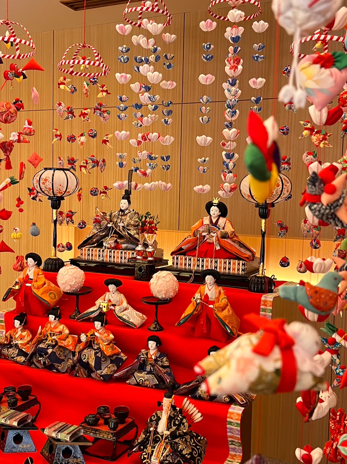 きれいに飾られたひな人形を見つけました。最近は住宅事情もあり、段飾りを見ることが少なくなったように感じます。